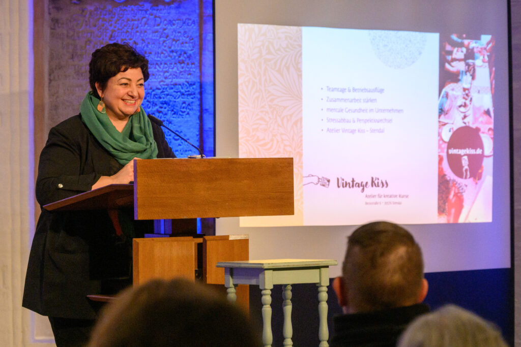 Im Vintage Kiss Atelier in Stendal biete ich Kreativkurse für Privatpersonen sowie Teamtage und Betriebsausflüge in kleinen Gruppen an. Dabei lege ich besonderen Wert auf einen wertschätzenden Rahmen, persönliche Begleitung und nachhaltige Wirkung.